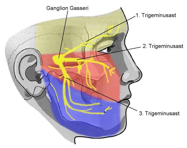 Die Trigeminusneuralgie ist eine chronische Schmerzerkrankung des Trigeminusnerven, der für die Gefühlswahrnehmung des Gesichts, der Schleimhäute in Mund und Nase und der Hornhaut verantwortlich ist. Motorisch steuert er einen Großteil der Kaumuskulatur.